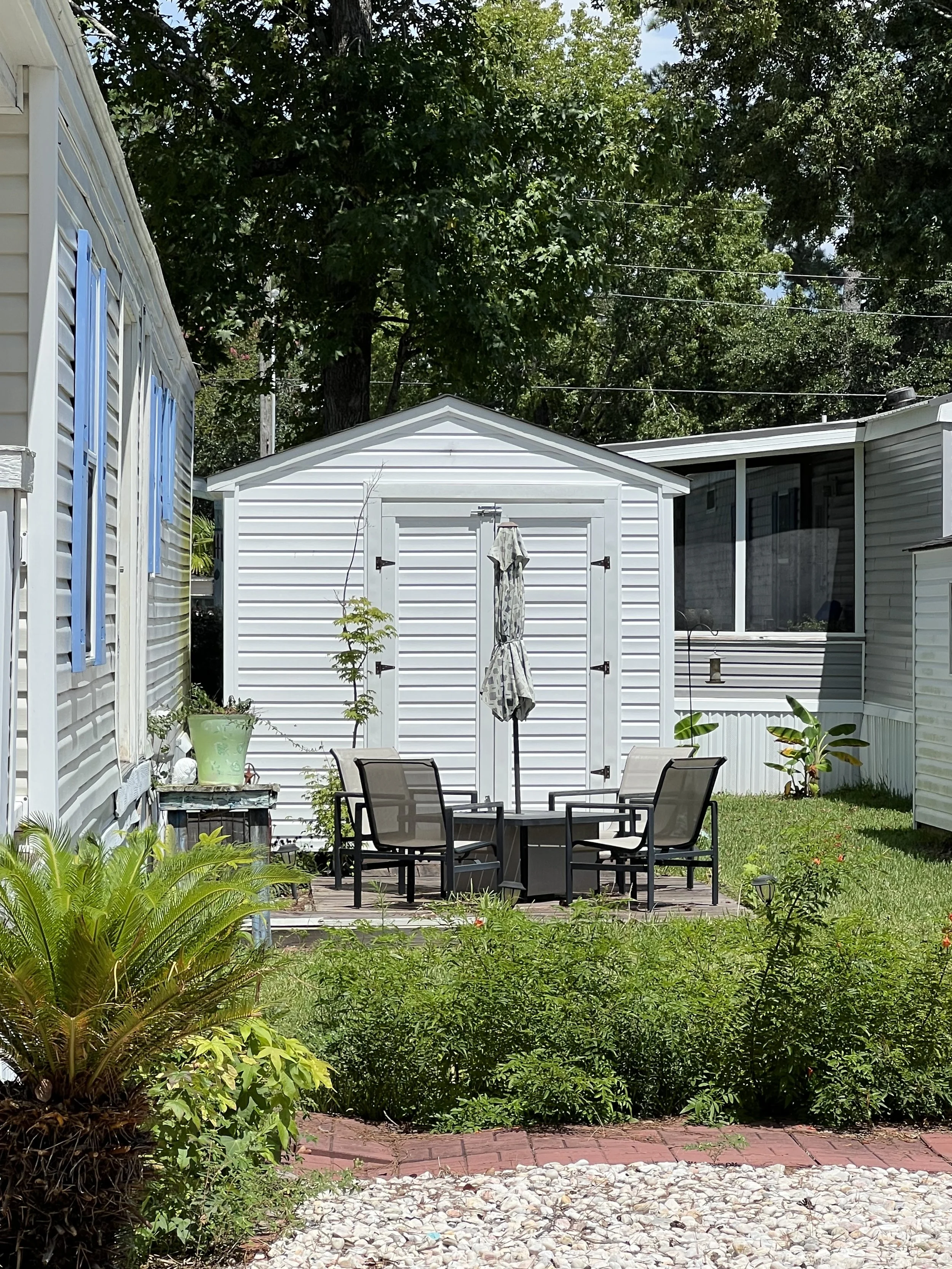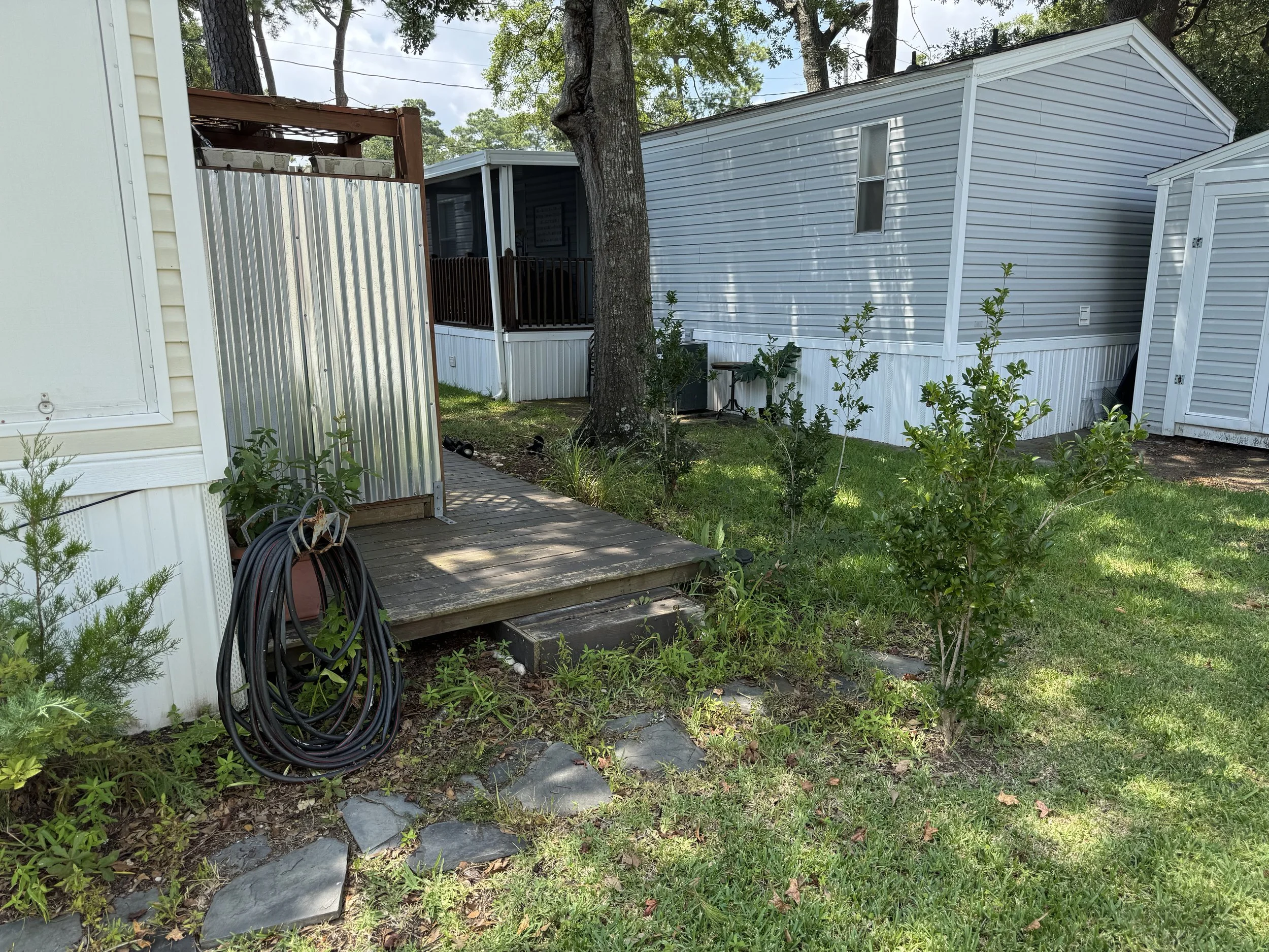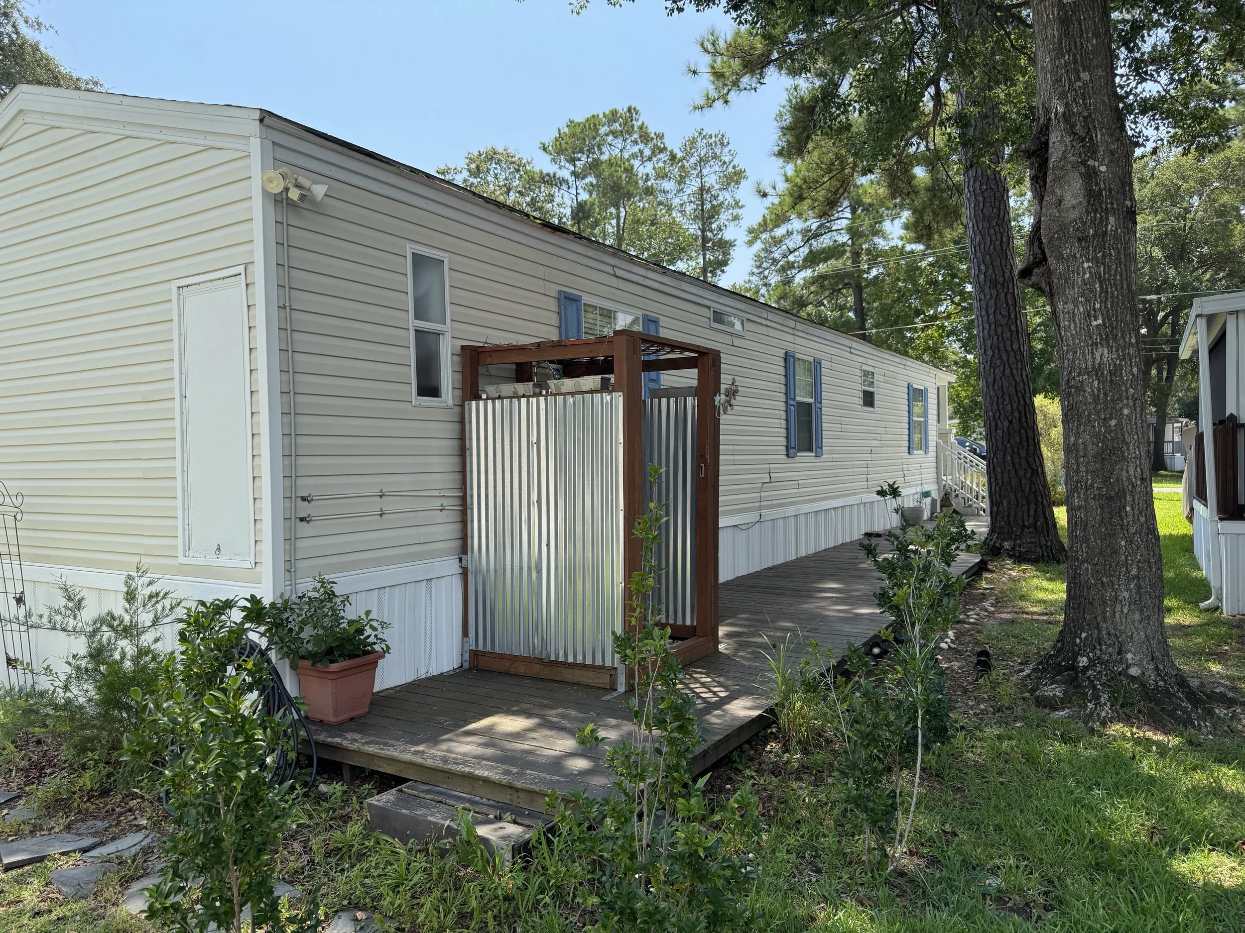 Ample parking, Covered front porch, outdoor deck seating area, shed & super cool outdoor shower.