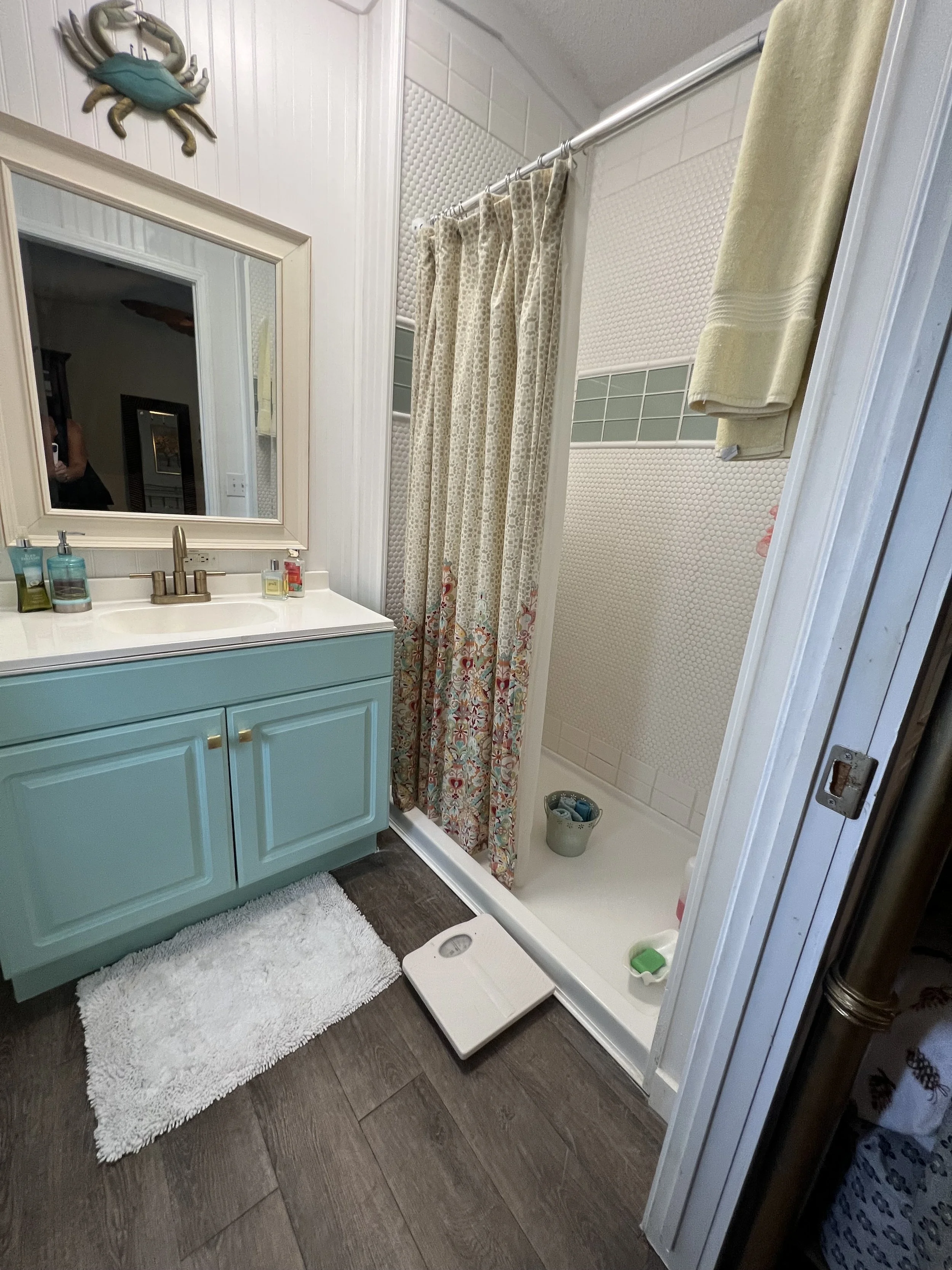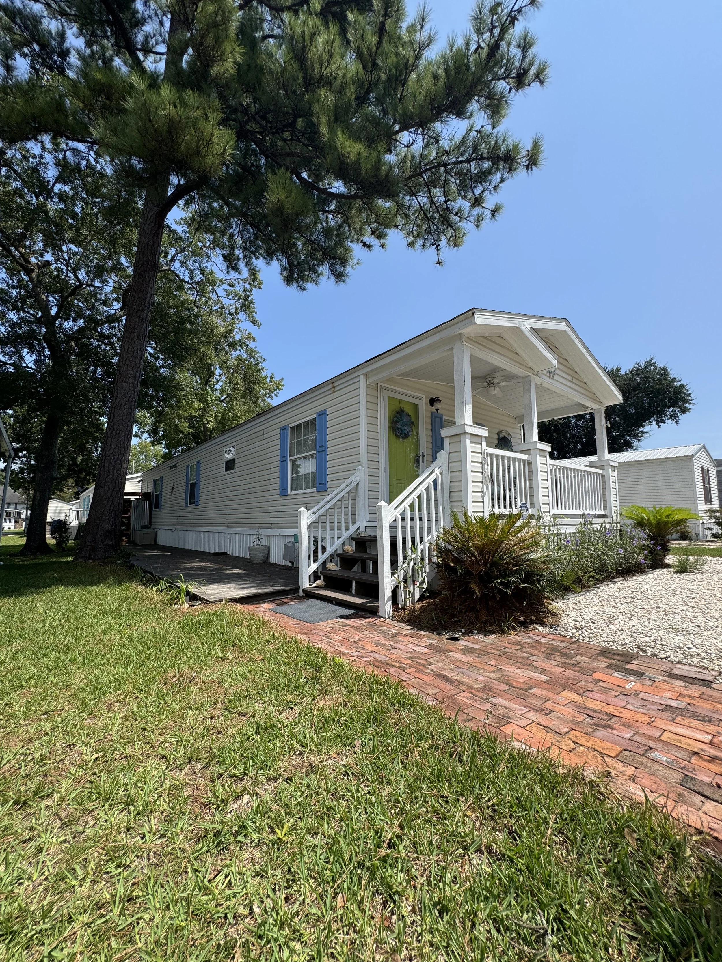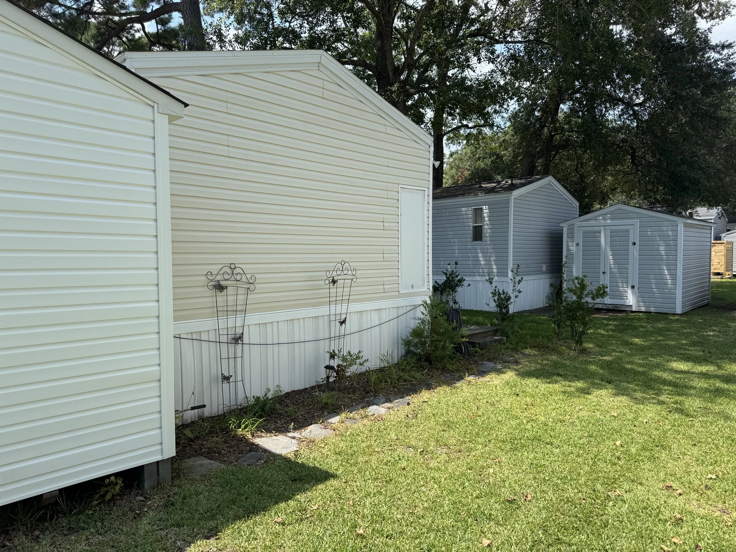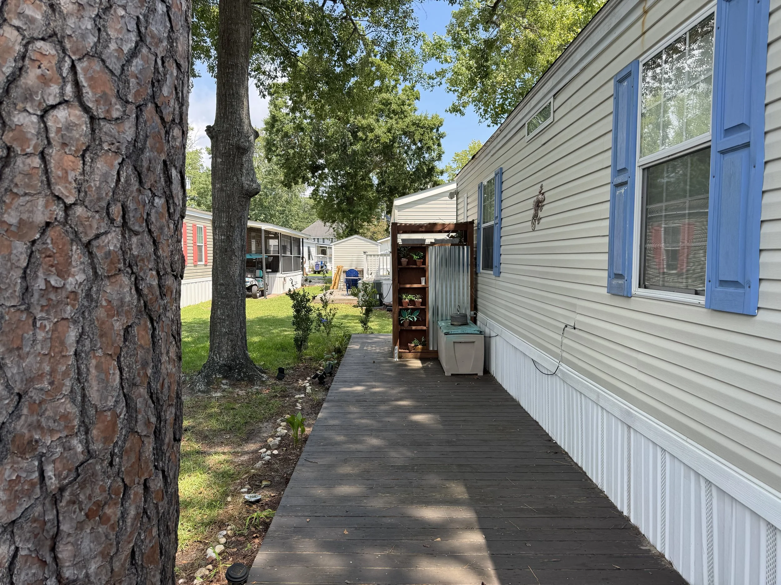 Ample parking, Covered front porch, outdoor deck seating area, shed & super cool outdoor shower.